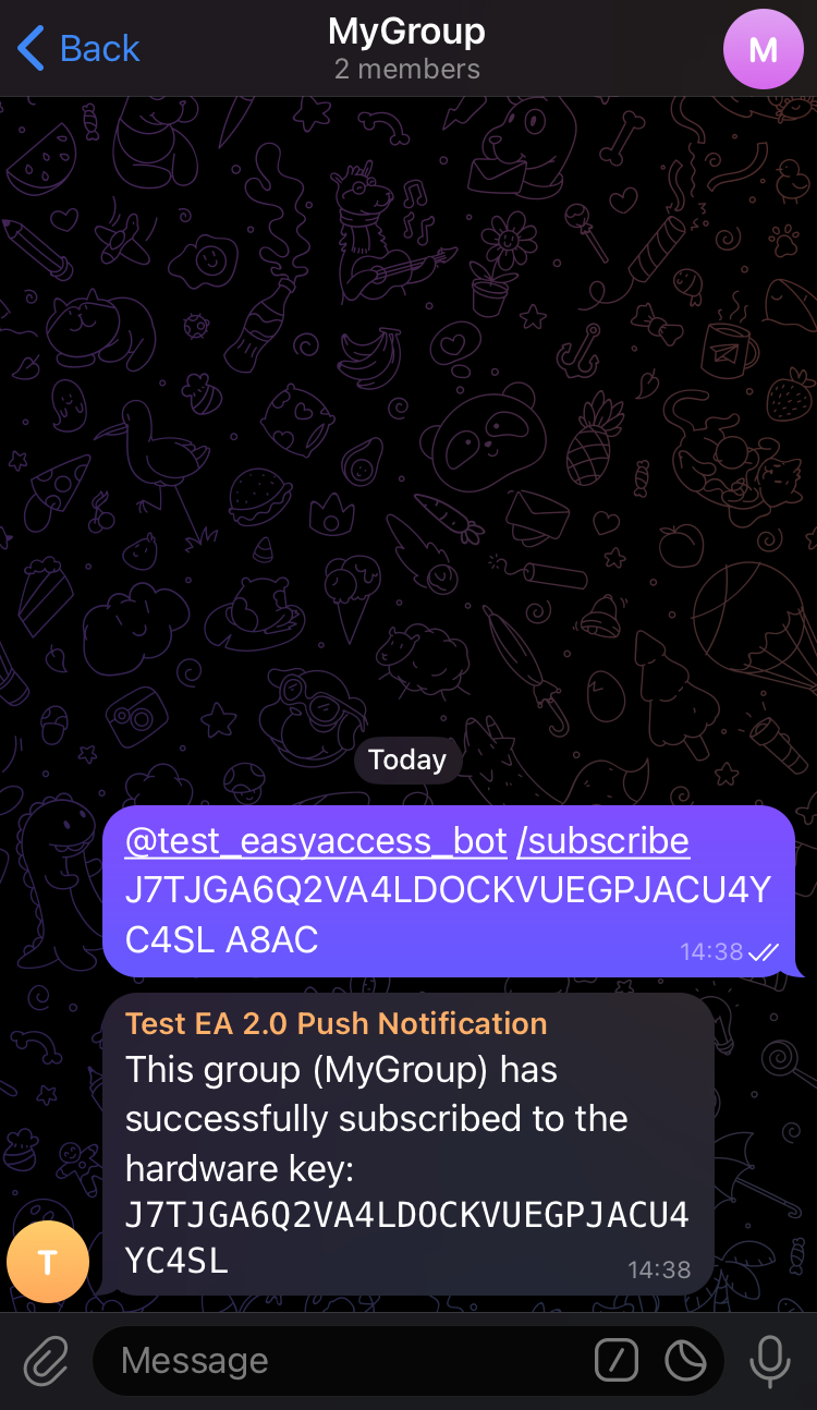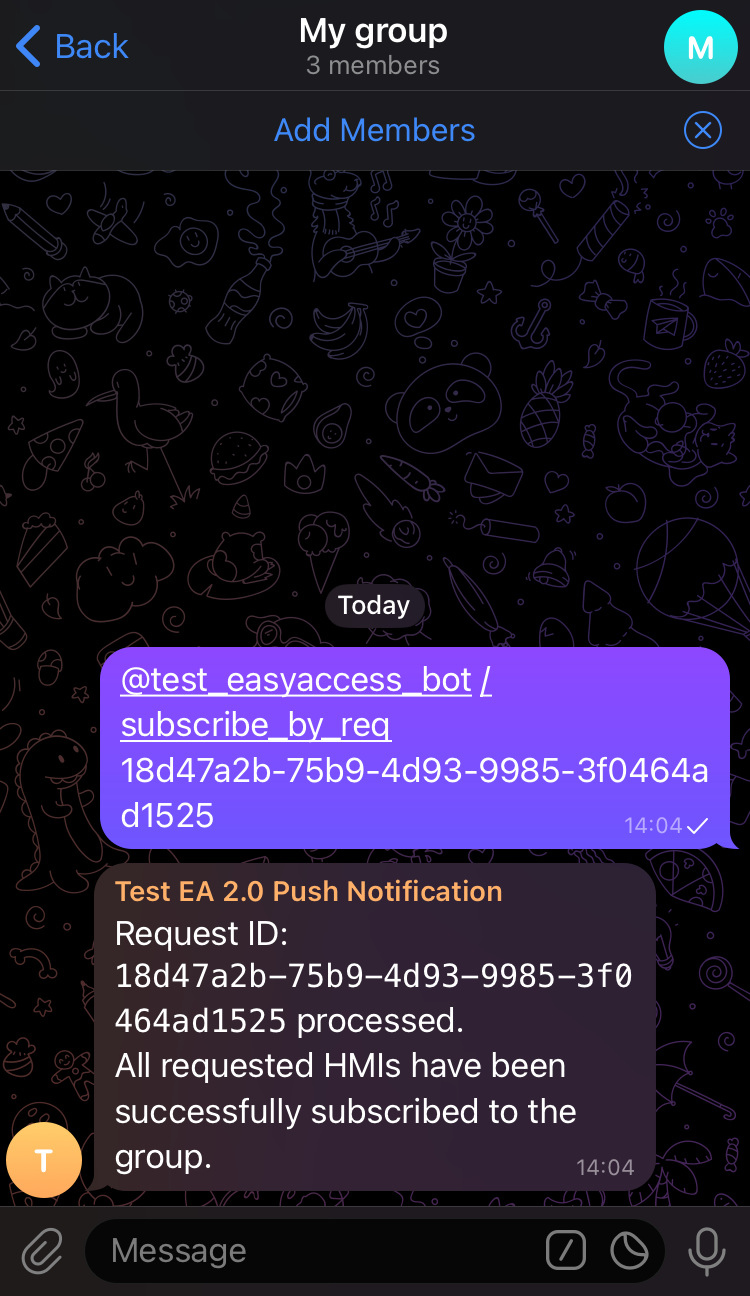 There are two ways to subscribe a Telegram group to receive push notifications: