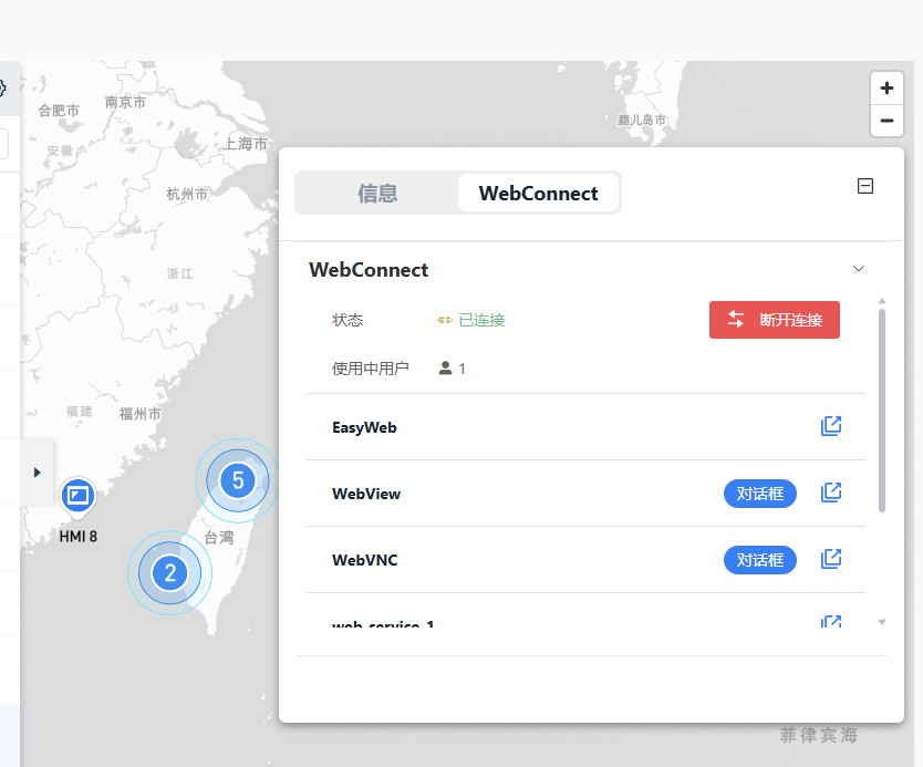 集成 EasyAccess 2.0 的 WebConnect 功能,允许用户直接从地图介面发起远程连接。